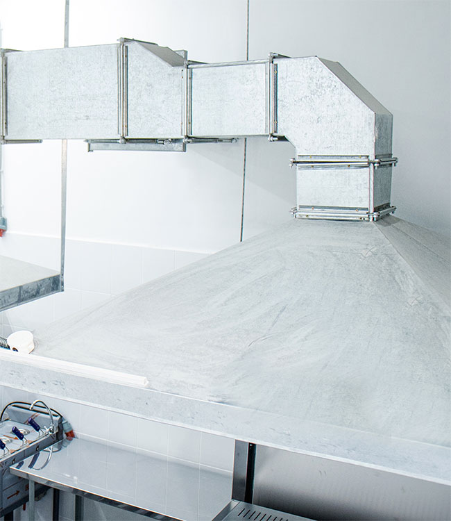 Las cocinas industriales están equipadas con sistemas de extracción potentes que succionan vapores, humos y gases cargados de partículas grasas y residuos orgánicos. Esta grasa, en estado gaseoso, se desplaza por todo el sistema de ventilación hasta los filtros, conductos y motores de extracción. Aunque los filtros retienen una parte importante de estas partículas, una cantidad significativa atraviesa las barreras y se deposita en el interior de los conductos.